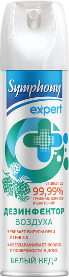 Дезинфицирующее средство Symphony Expert - самый первый на рынке дезинфектор помещений с запатентованной формулой! Научно доказана пролонгированная антибактериальная активность дезинфектора Symphony Expert против типичных представителей вирусных инфекций: полиовирусы, норовирусы, аденовирусы, вирусы группы А и В, в том числе против вирусов ГРИППа и простуды.Дезинфектор Symphony Expert устраняет устойчивые бактерии уже через 15 секунд, грибки и плесень – через 7 минут, убивает вирусы на поверхностях через 5 минут, а в воздухе – через 15 минут.