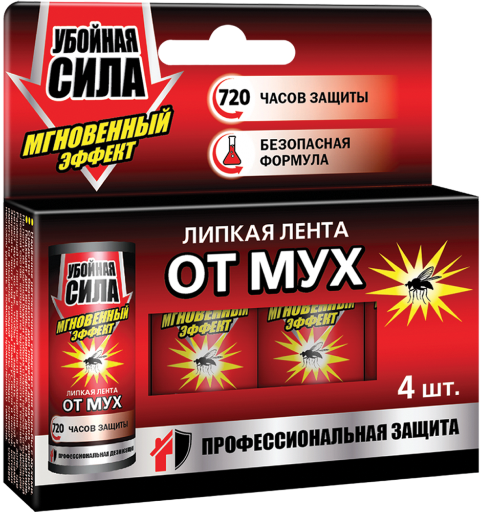 Убойная сила - липкая лента для мух (комплект 4 шт)