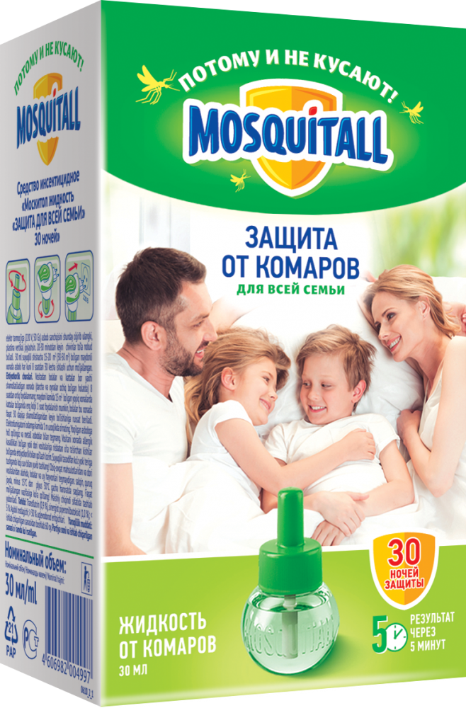 MOSQUITALL - Жидкость 30 ночей " ЗАЩИТА ДЛЯ ВСЕЙ СЕМЬИ " от комаров 30 мл