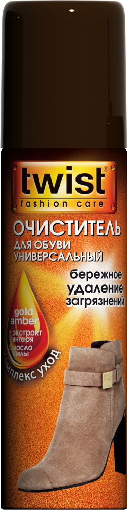 Twist – современный бренд косметических средств для ежедневного ухода за обувью, одеждой и аксессуарами. С Twist каждая женщина, мужчина и ребенок могут носить модную и красивую обувь в любой ситуации. Средства Twist обогащены уникальными активными натуральными компонентами на основе золотистого янтаря (Gold Amber). Gold Amber в составе способствует: • Восстановлению и смягчению кожи. • Придает ей стойкий цвет и блеск. • Защищает обувь от негативного воздействия окружающей среды. • Предотвращает появление пятен от воды, соли и снега.