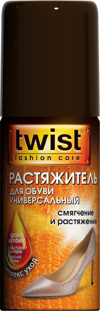 Twist – современный бренд косметических средств для ежедневного ухода за обувью, одеждой и аксессуарами. С Twist каждая женщина, мужчина и ребенок могут носить модную и красивую обувь в любой ситуации. Средства Twist обогащены уникальными активными натуральными компонентами на основе золотистого янтаря (Gold Amber). Gold Amber в составе способствует: • Восстановлению и смягчению кожи. • Придает ей стойкий цвет и блеск. • Защищает обувь от негативного воздействия окружающей среды. • Предотвращает появление пятен от воды, соли и снега.
