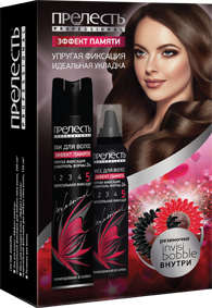 Подарочный набор Прелесть Professional "Эффект памяти" (лак, мусс, 2 резинки д/волос, коробка)